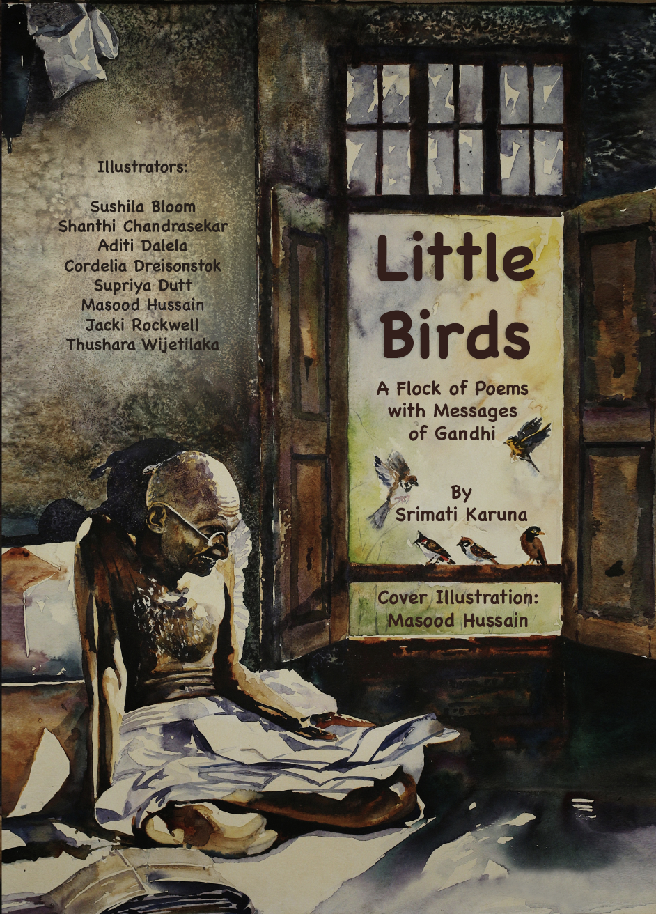 In one of Mahatma Gandhi's letters to the children of his ashram, he addressed them as “little birds.” Just as children around the world are introduced to morals and ideals through stories of animals, this flock of poems brings messages from Mahatma Gandhi through stories told by and about birds. This book breathes through the wings of birds in rhyming verse. The poems are inspired by beloved folk tales and stories gathered from the Panchatantra, the Jataka tales, the Upanishads, the Bible, the Qur’an, Attar’s Conference of the Birds, Aesop’s Fables and more. The artwork has been offered by a variety of artists to share the visual imagery expressed by the poems. Each unique style presents a loving contribution. Available on Amazon.